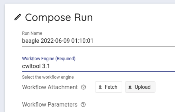 Compose Run の項目から、Workflow Engine の項目で cwltool 3.1 を選択します。