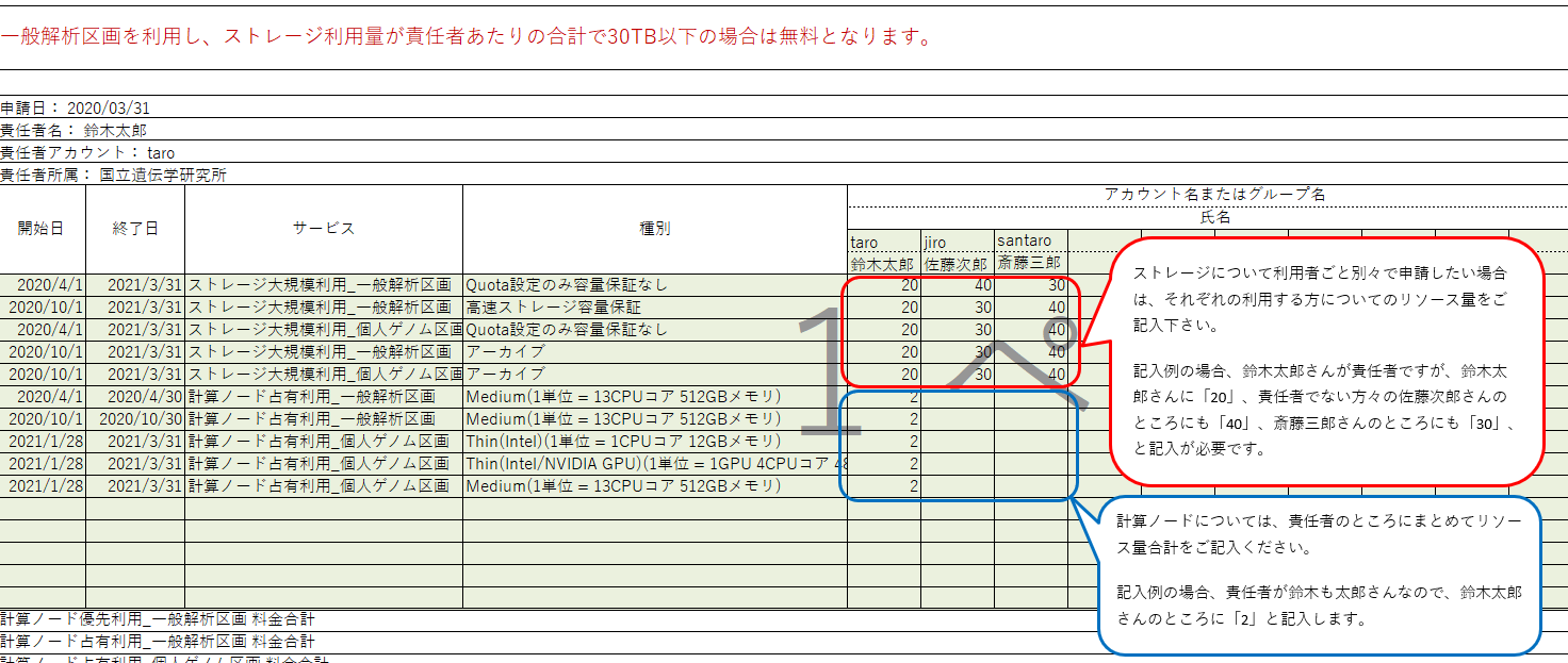 The total amount of high-speed storage under 30TB for each responsible person is free, and a group are created for each responsible person. When you wish to set the quota for each responsible person, let us know.